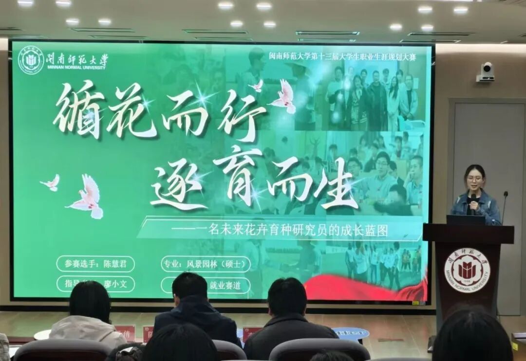 为深入学习党的二十届四中全会精神,贯彻落实党中央、国务院关于高校毕业生就业工作的部署要求,进一步强化大学生生涯规划意识,提升综合就业竞争力,我院于11月30日下午在达南 106 举办了2025年大学生职业生涯规划大赛决赛。本次大赛吸引了不同专业、不同年级的学子参与,13位选手齐聚现场,共同探索职业方向,勾勒个人发展蓝图。赛事由生科院团委主办,生科院就业创业服务中心承办,特邀闽南师大生科院辅导员陈炜、曾佩旖、林舒倩、李锦祥担任决赛评委。