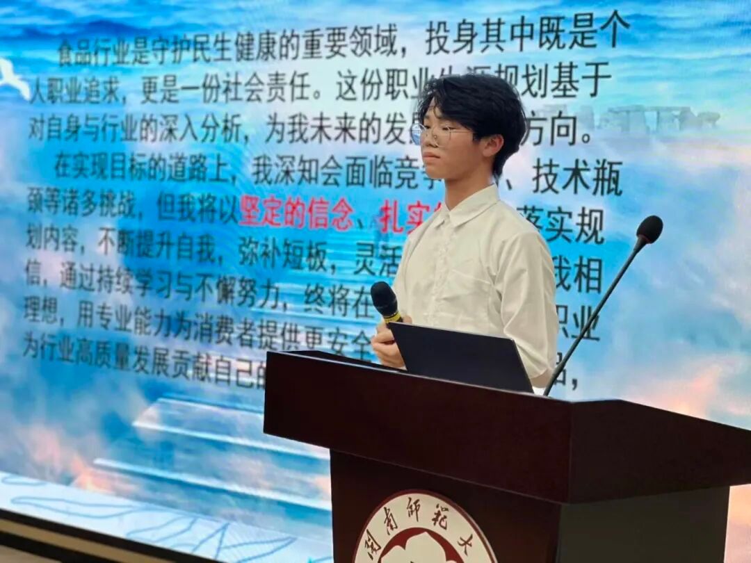 比赛过程中,选手们展现出了扎实的规划能力:规划书展示环节,一份份逻辑清晰、内容详实的作品,既体现了选手对自我特质的深度认知,也包含了对行业趋势的敏锐洞察 —— 有人锚定 “花卉栽培师” 方向,结合校园园艺实践规划了从基础技能积累到职业花艺培育的成长路径,有的瞄准 “生物工程师” 岗位,围绕生物制品研发梳理了阶梯式专业技能提升计划,还有的聚焦 “食品工程师” 职业,结合食品质量与安全专业知识,勾勒出兼具创新性与可行性的行业进阶蓝图。面对评委的专业提问,选手们沉着应答,以清晰逻辑与扎实准备阐述规划细节,展现出良好的心理素质与应变能力,多次赢得现场掌声。