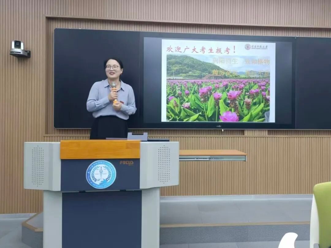 在研究生招生宣讲会上,刘静娜教授从学校的历史沿革、办学定位、学科布局切入,重点介绍了永利304官网唯一的师资力量、科研平台、研究生培养体系及近年来在人才培养、科学研究、社会服务等方面取得的显著成效。她详细解读了学院生物与医药等相关硕士点的培养目标、课程设置、导师团队及毕业生就业前景,鼓励在场学生树立远大志向,积极报考闽南师大。在互动答疑环节,同学们围绕考研复习规划、专业课备考策略、招生政策、跨专业报考注意事项等问题踊跃提问,刘静娜教授及随行老师结合自身经验,逐一进行了耐心细致的解答,并针对性地提供了科学的备考建议和学习方法指导,现场气氛热烈而融洽,赢得了同学们的阵阵掌声。