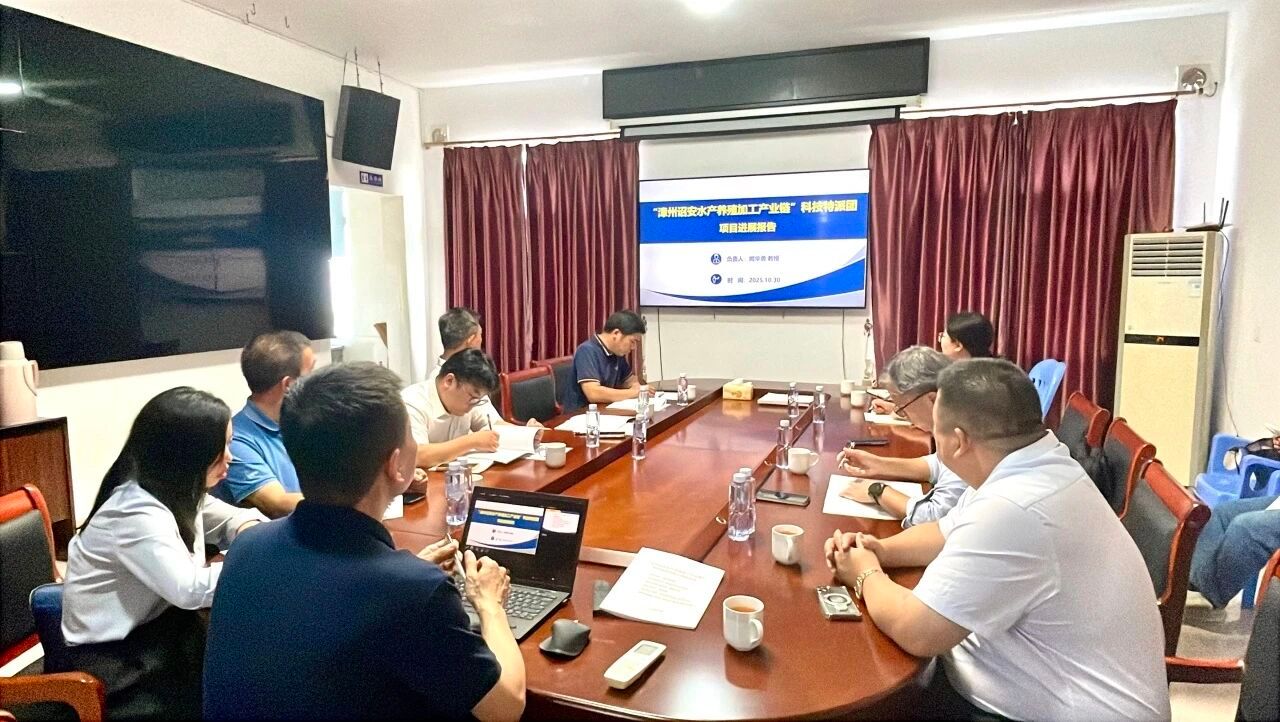 评审会议率先在福建宝智水产有限公司召开。会上,刘静娜、费鹏代表项目参与单位,详细汇报了科技特派团项目的整体推进情况、阶段性成果及后续工作计划。汇报结束后,评审专家组与项目团队围绕技术攻关难点、成果转化路径等展开深入研讨,提出针对性优化建议。