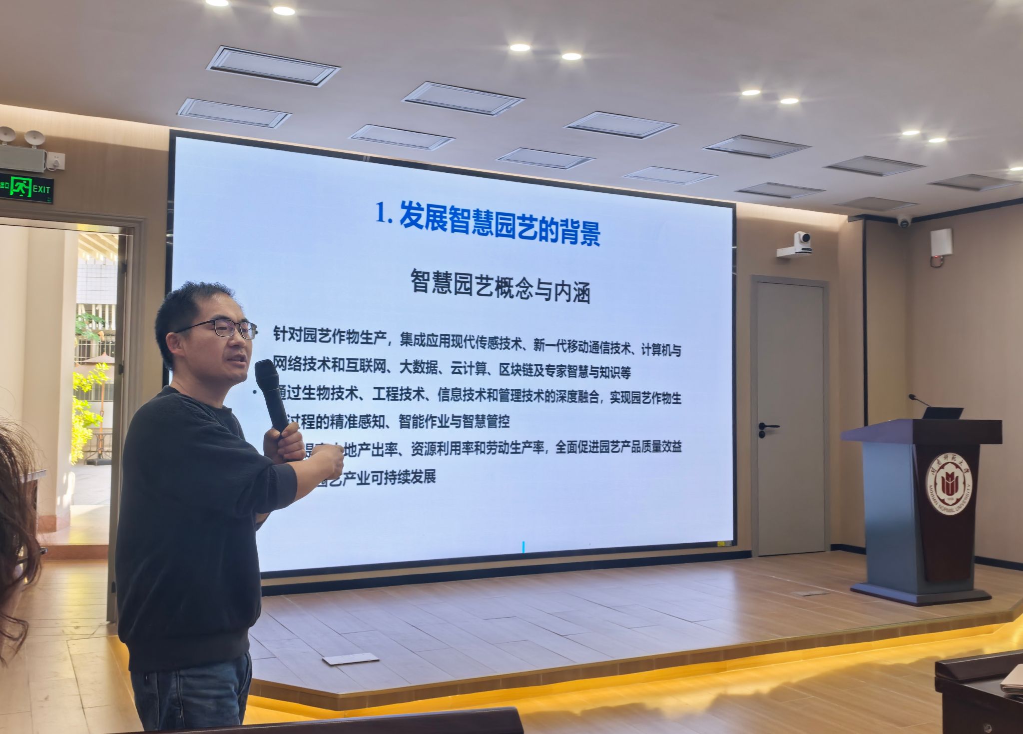 2025年11月22日上午,华中农业大学园艺林学学院设施与智慧园艺系主任、博士生导师黄远教授在生科院达南106学术报告厅开展了一场主题为《智慧园艺主要应用场景》的专题讲座。