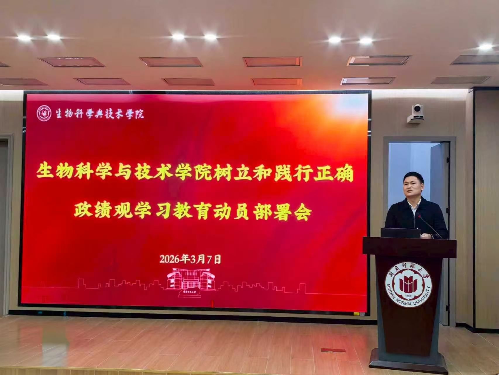 3月7日,我院在达南106召开全院大会,认真学习习近平总书记关于树立和践行正确政绩观的重要讲话和重要指示精神,传达学习了上级关于开展树立和践行正确政绩观学习教育的有关文件精神和重要要求,研究部署学院开展树立和践行正确政绩观学习教育工作,会议由学院党委书记连恩德主持。